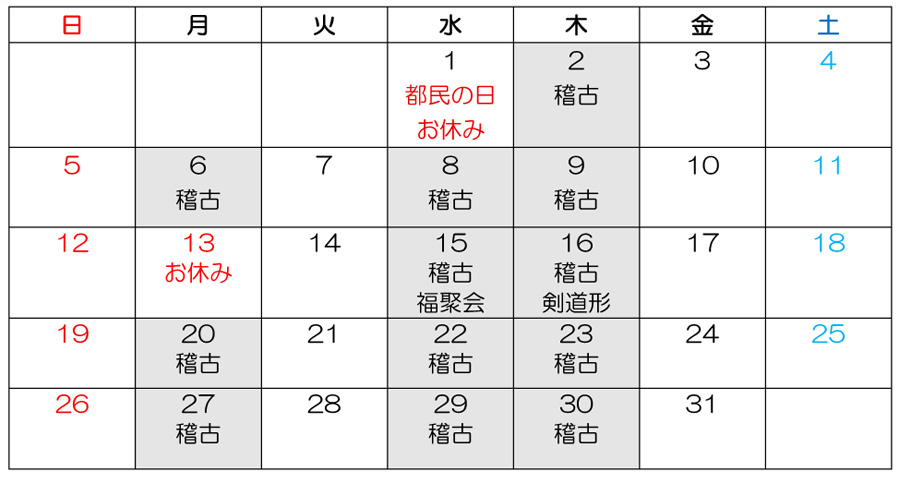 11月3日(月・祝) 谷塚剣友会練成会 |